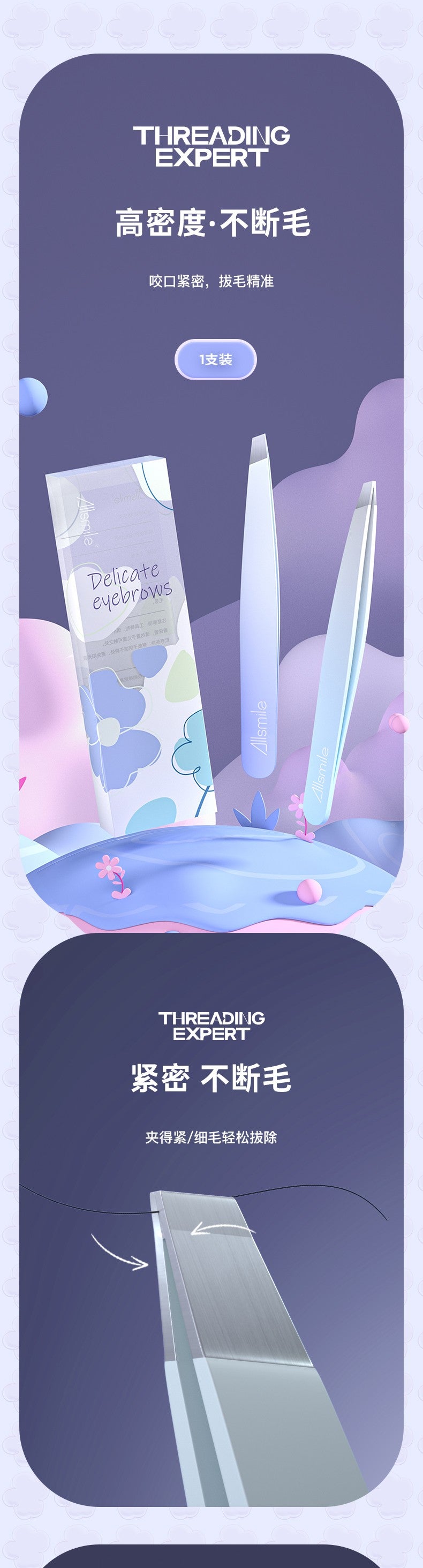 【自营】中国ALLSMILE哎哟咪 幻彩修眉夹 细雾蓝 1支装 高精密眉夹镊子男士专用拔胡子神器