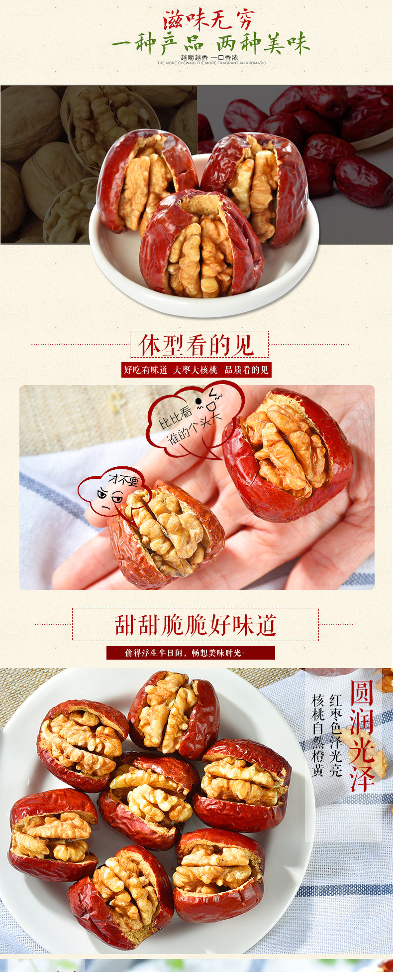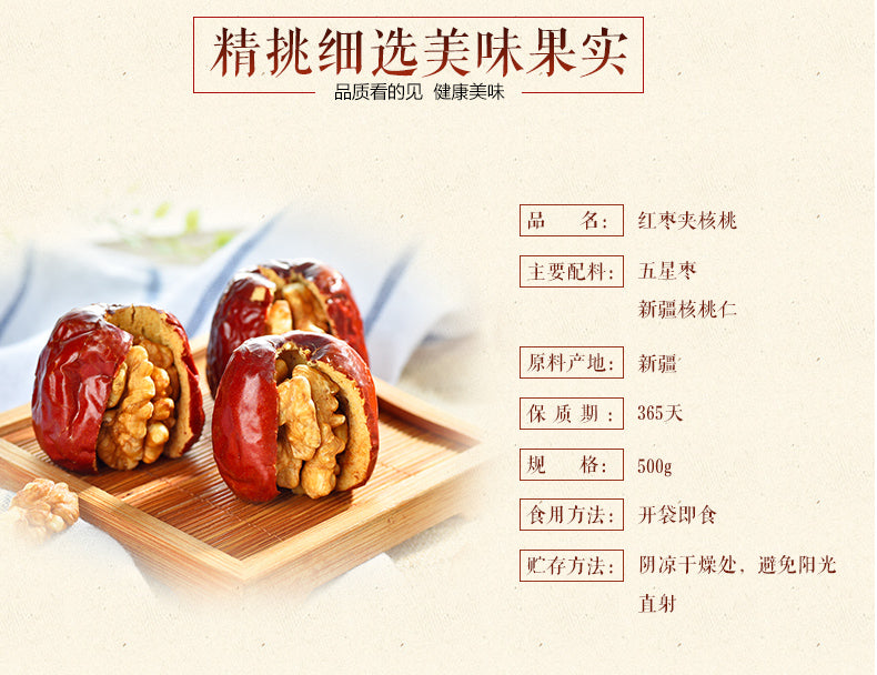 【自营】中国SIHONG思宏 五星红枣夹核桃仁 500g 新疆和田特产夹心大枣休闲零食