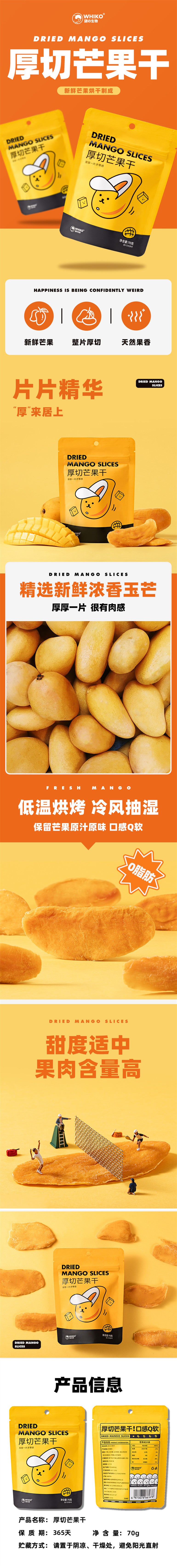 【自营】中国WHIKO谜之生物 厚切芒果干 70g 0脂肪蜜饯果脯袋装休闲零食水果干