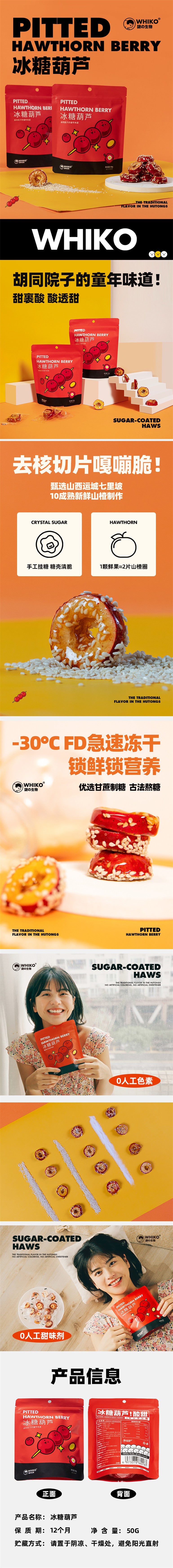 【自营】中国WHIKO谜之生物 新包装冰糖葫芦 50g 独立包装冻干无核山楂开胃零食