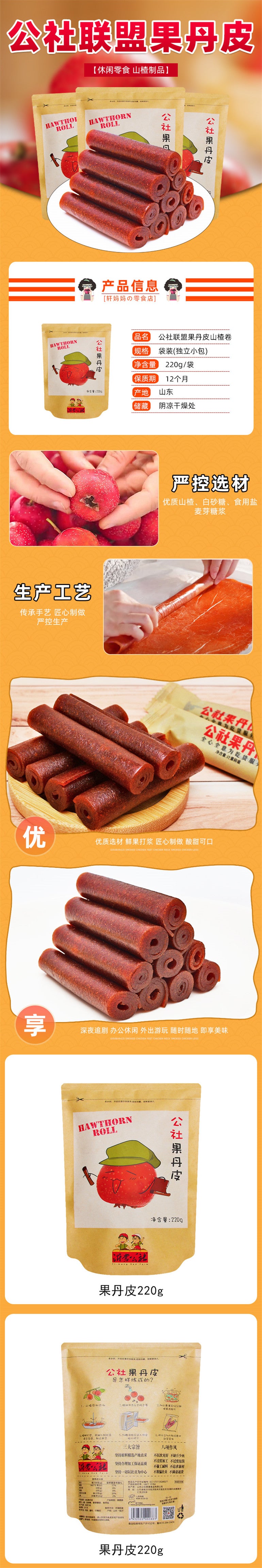 【自营】中国YIMENG沂蒙公社 果丹皮 独立包装 220g 无任何添加剂儿童零食