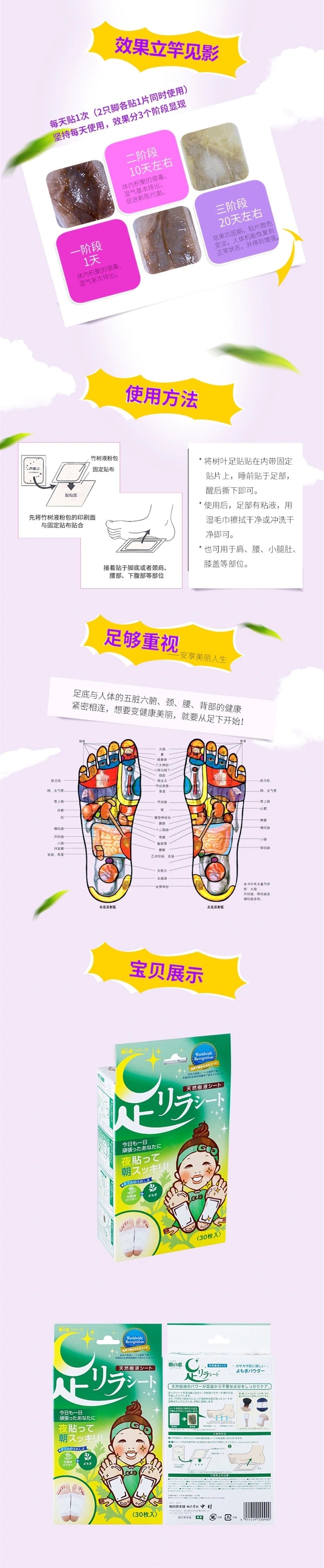 【自营】日本ASHIRIRA树之惠足贴 天然树液艾草排毒足贴 30片 排毒去湿气 助眠舒缓中药成分