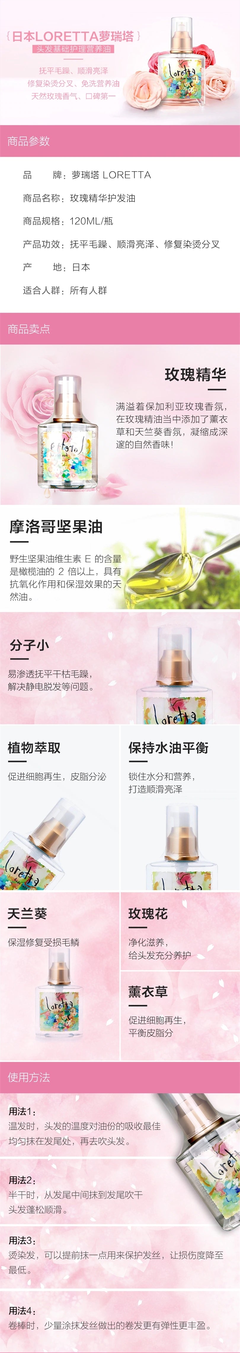【自营】日本MOLTO BENE Loretta基础玫瑰护理营养护发精油 120ml