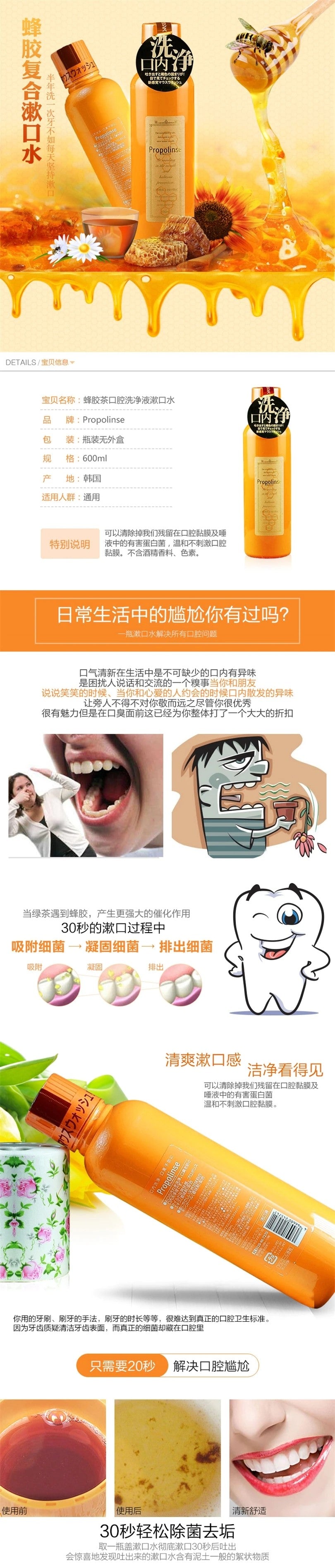 【自营】日本PROPOLINSE比那氏 蜂胶复合洗漱口水 600ml