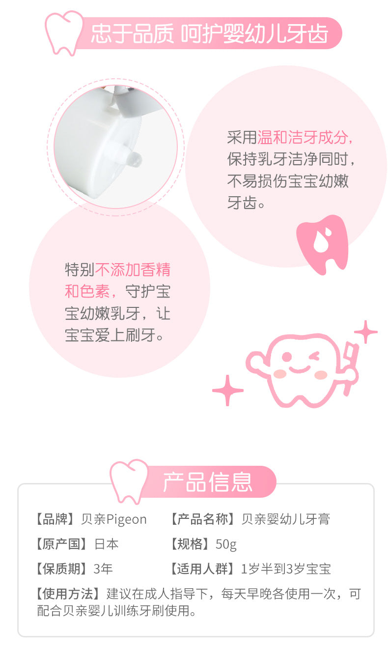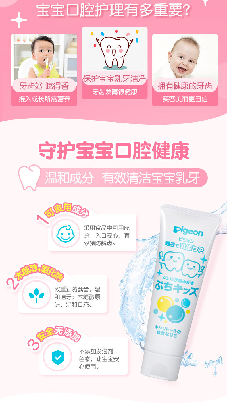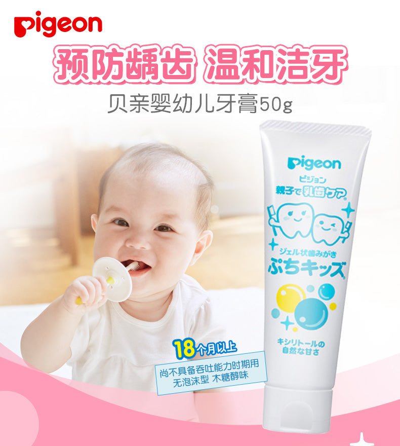 【自营】日本PIGEON贝亲 婴幼儿可吞咽牙膏 木糖醇自然甜味 50克 无色素无毒防蛀牙龋齿1岁半以上可用