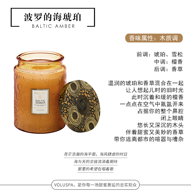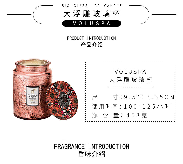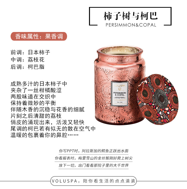 【自营】美国VOLUSPA 星空杯大浮雕香薰蜡烛 510g PERSIMMON & COPAL-柿子树与柯巴 安神助眠 浪漫氛围 赠礼佳品