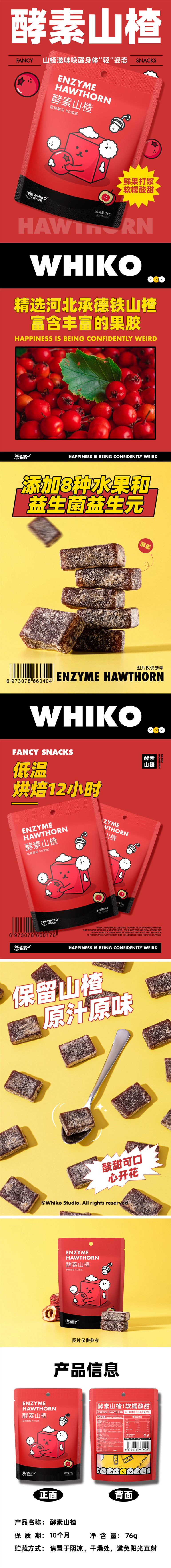 【自营】中国WHIKO谜之生物 酵素山楂 76g 美味健康酸甜可口休闲馋嘴小零食