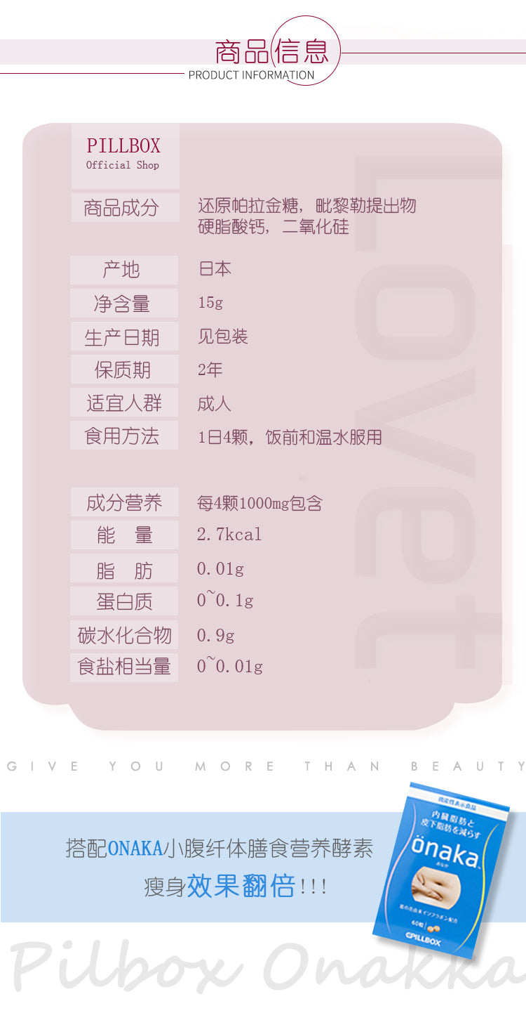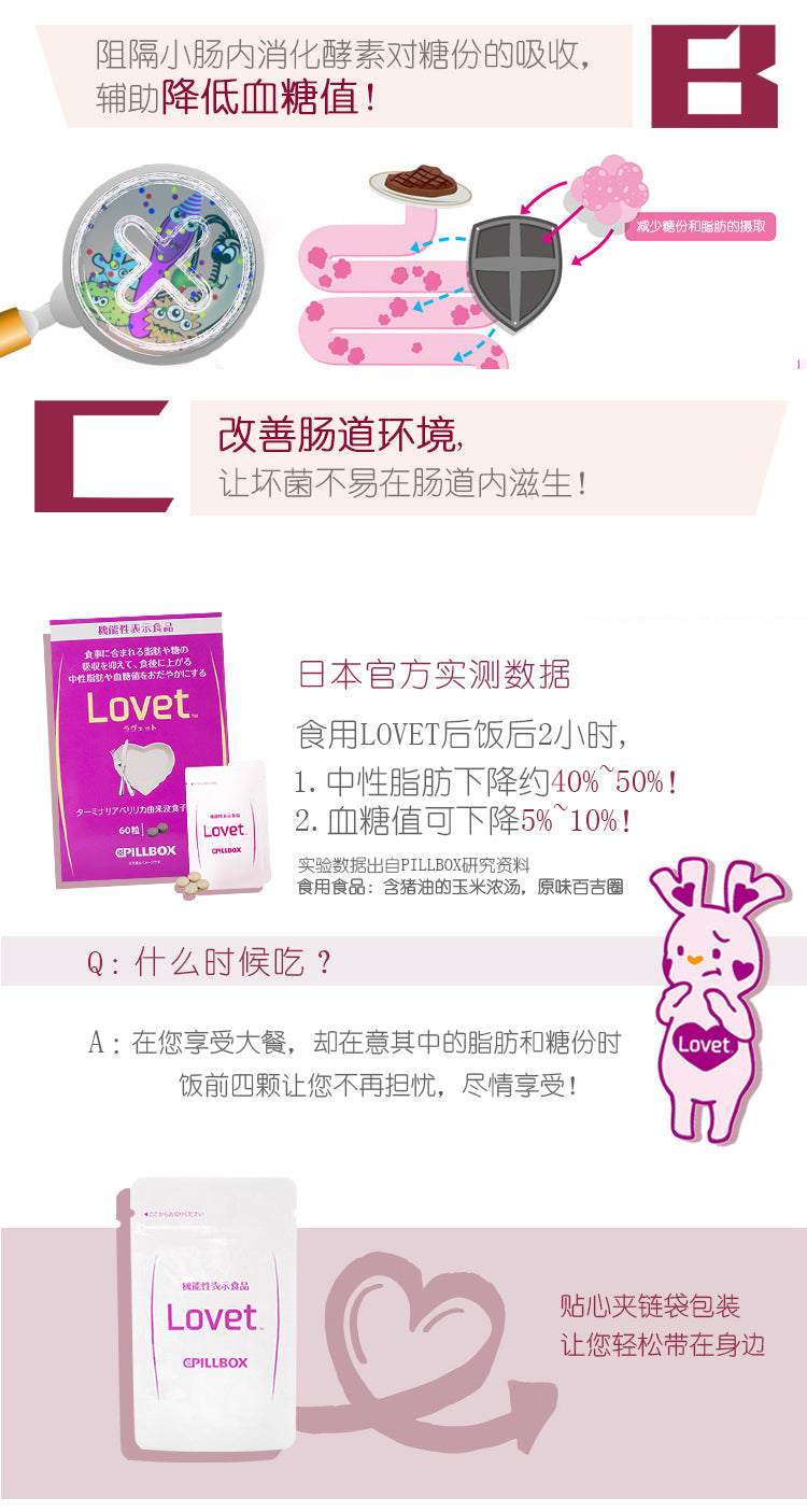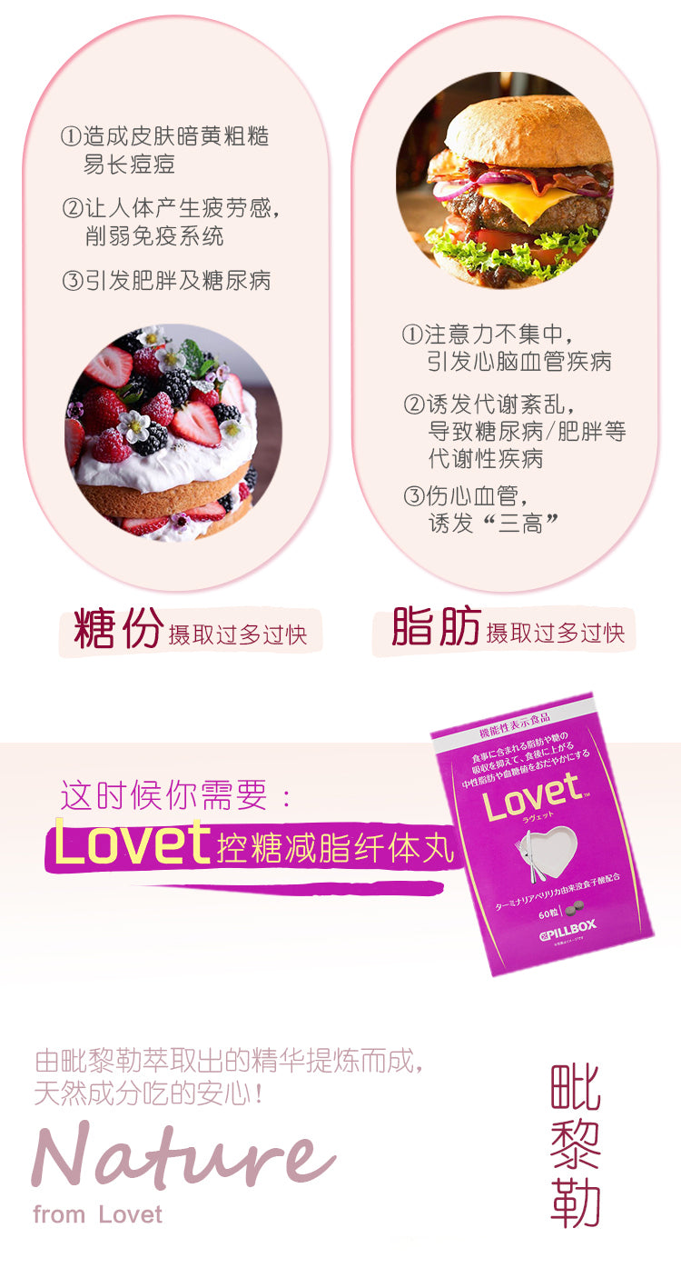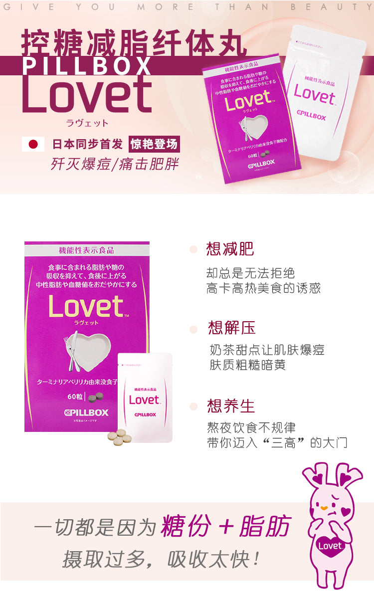 【自营】日本PILLBOX LOVET阻糖控糖分解酵素减脂纤体丸 60粒 歼灭爆痘痛击肥胖