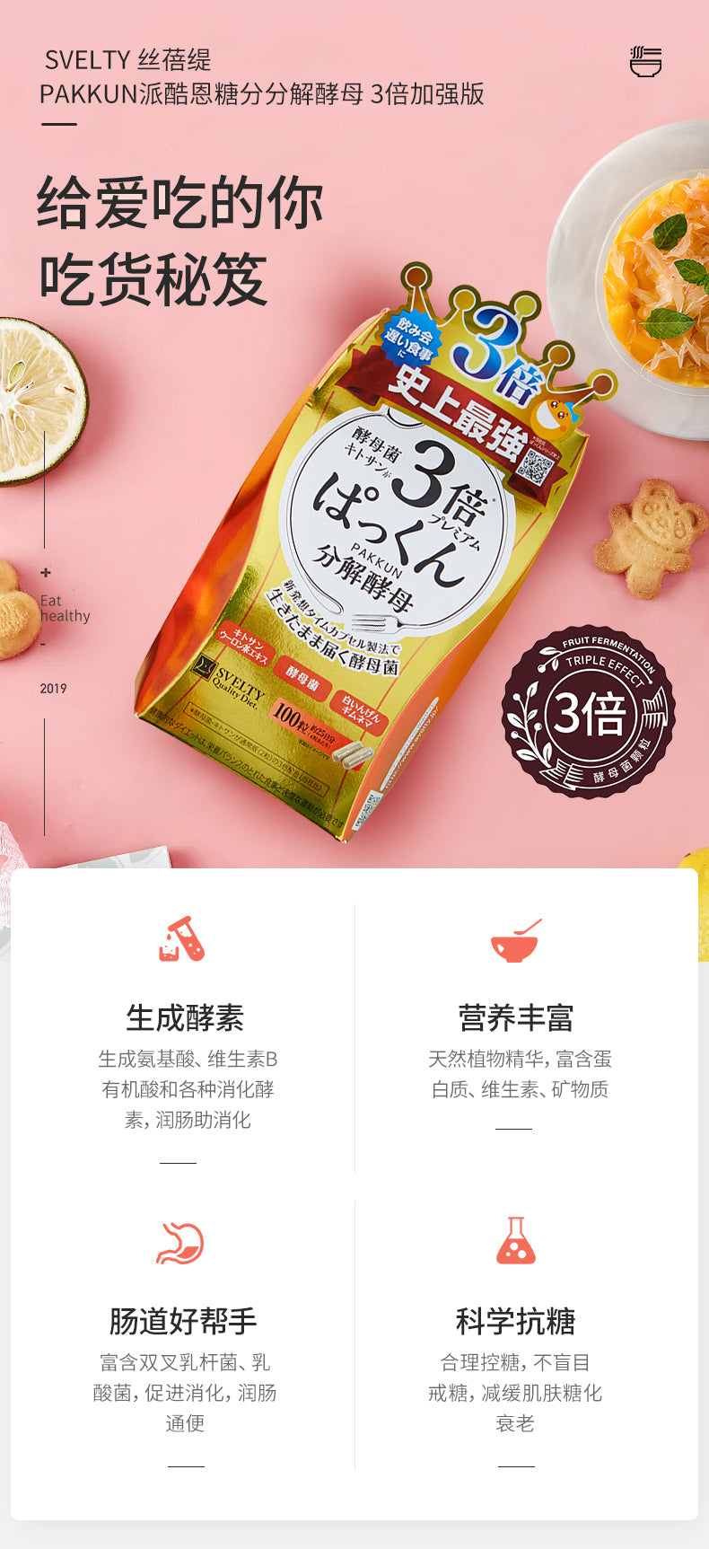 【自营】日本SVELTY丝蓓缇 阻糖糖质分解酵母酵素油脂分解3倍酵母热控片酵素 100粒 大包装 范冰冰推荐