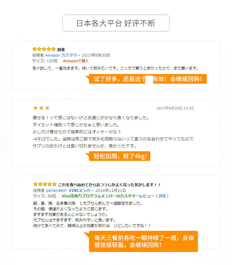 • 购买【XXXX 日本直邮】或【XXXX 中国直邮】,即商品标题前显示‘日本直邮’或‘中国直邮’的产品,产品由不同日本或中国商家发出。直邮商家,每个商家分别收取商家标题注明邮费金额,以及遵循各商家标题中免邮费标准。不同商家需1~5 个工作日内处理并发送您的订单。邮寄运输时间约5-12天。(注: 如选购多件【XXXX 日本直邮】或【XXXX 中国直邮】商品,且每个商家所购商品需要免邮,则所购不同商家的商品总额,需要满足不同商家标题中的免邮费要求)