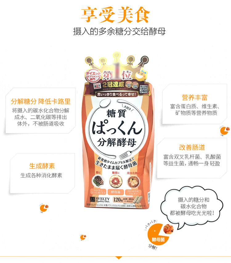 【自营】日本SVELTY丝蓓缇 Pakkun阻糖糖质分解酵母生成酵素120粒