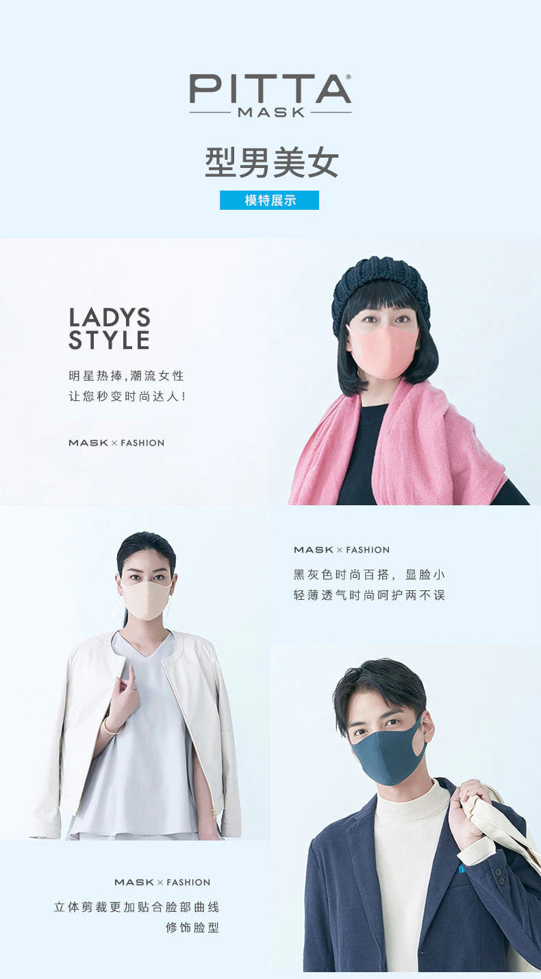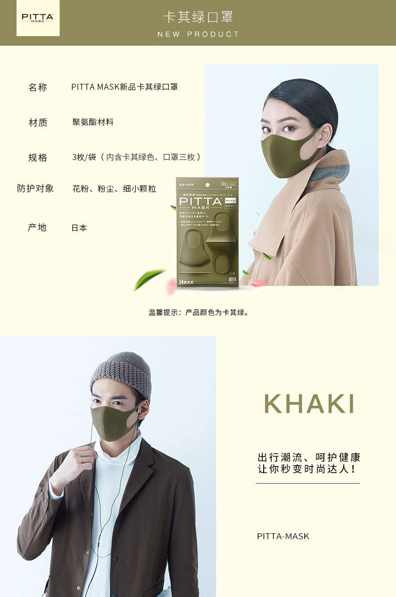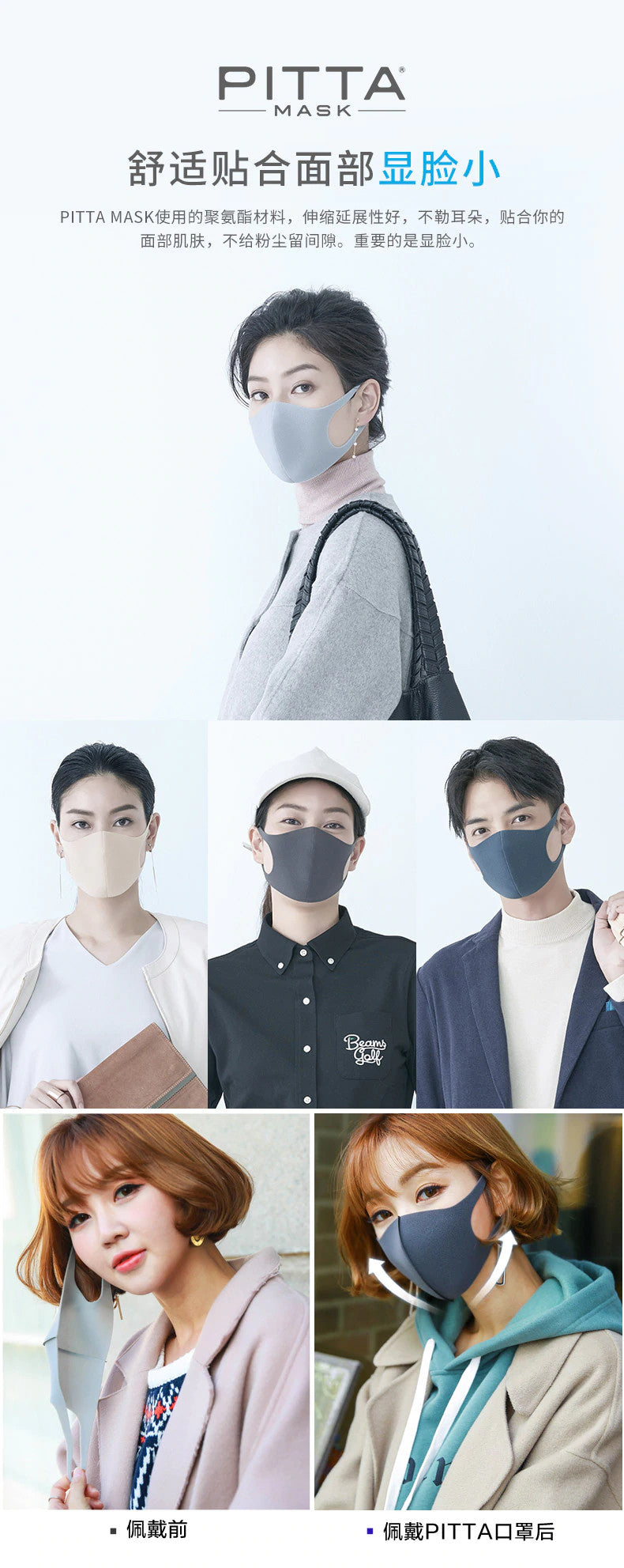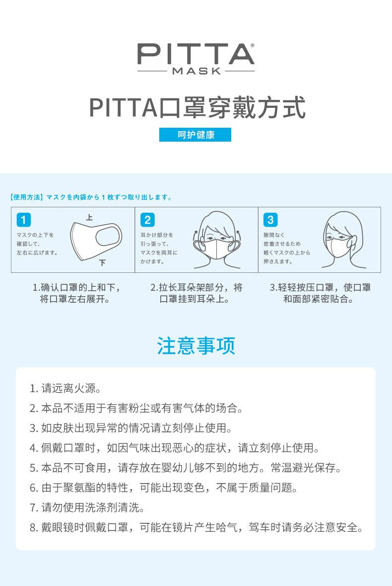 【自营】日本PITTA MASK 新版立体可水洗防尘防花粉透气口罩 #海军蓝 3枚入 明星同款