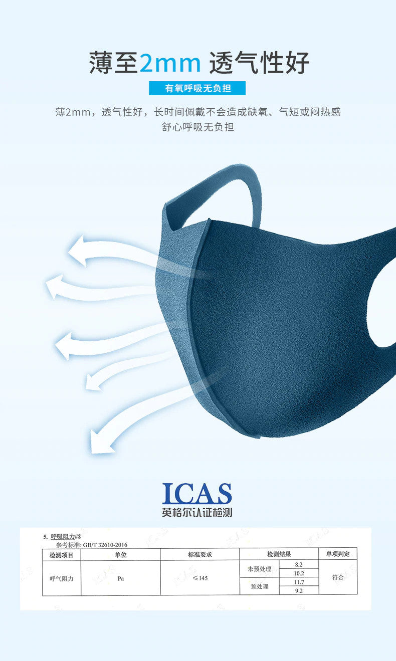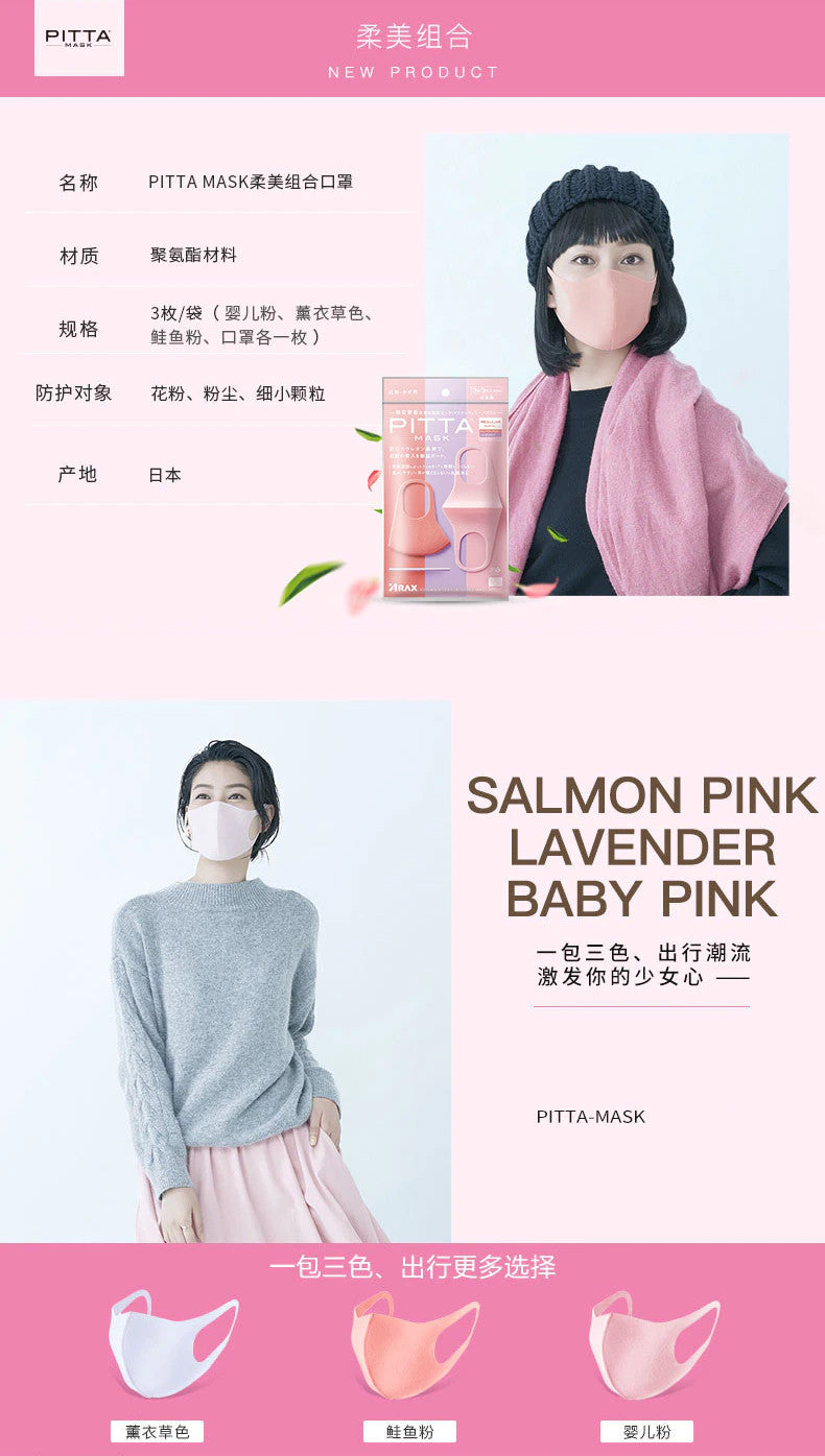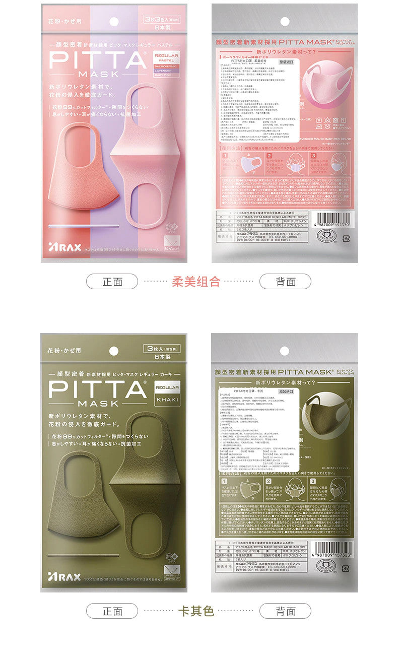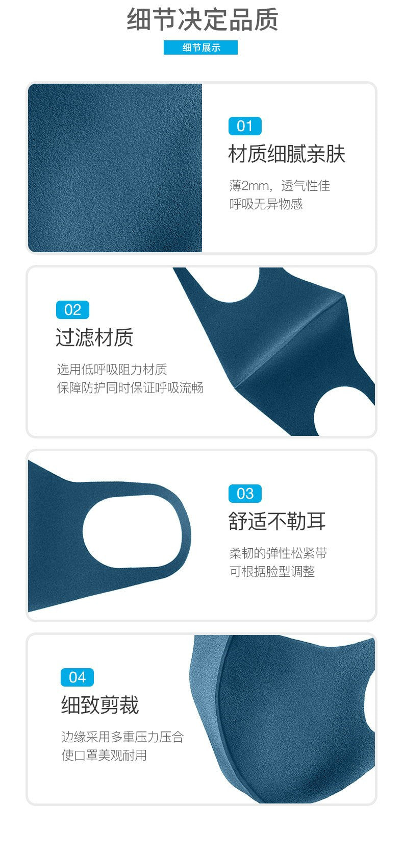 【自营】日本PITTA MASK 新版立体可水洗防尘防花粉透气口罩 #海军蓝 3枚入 明星同款