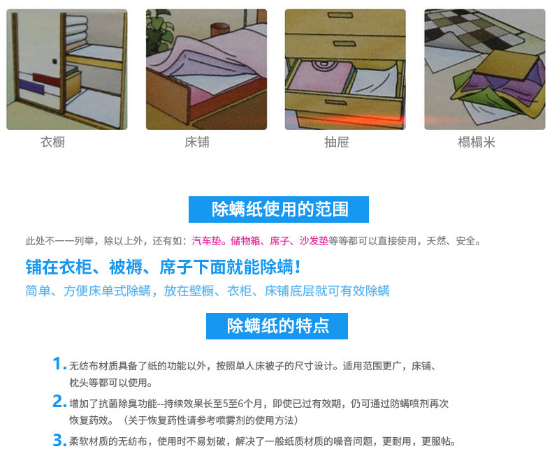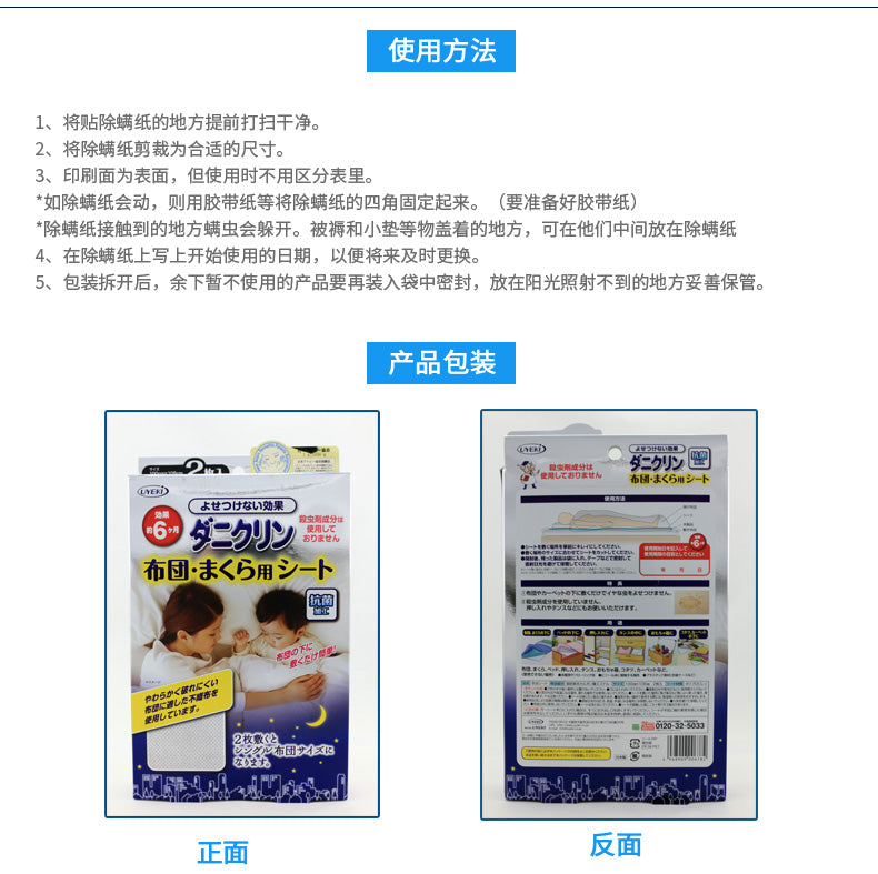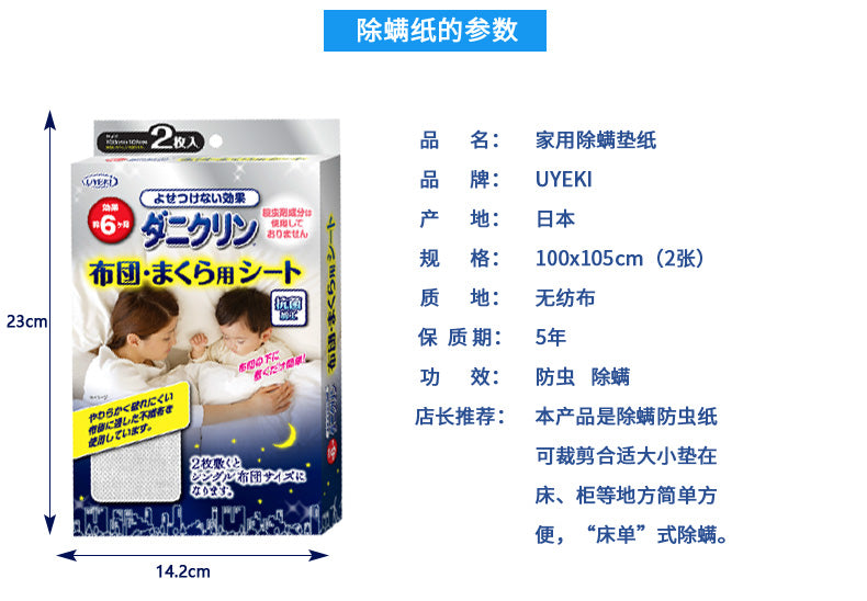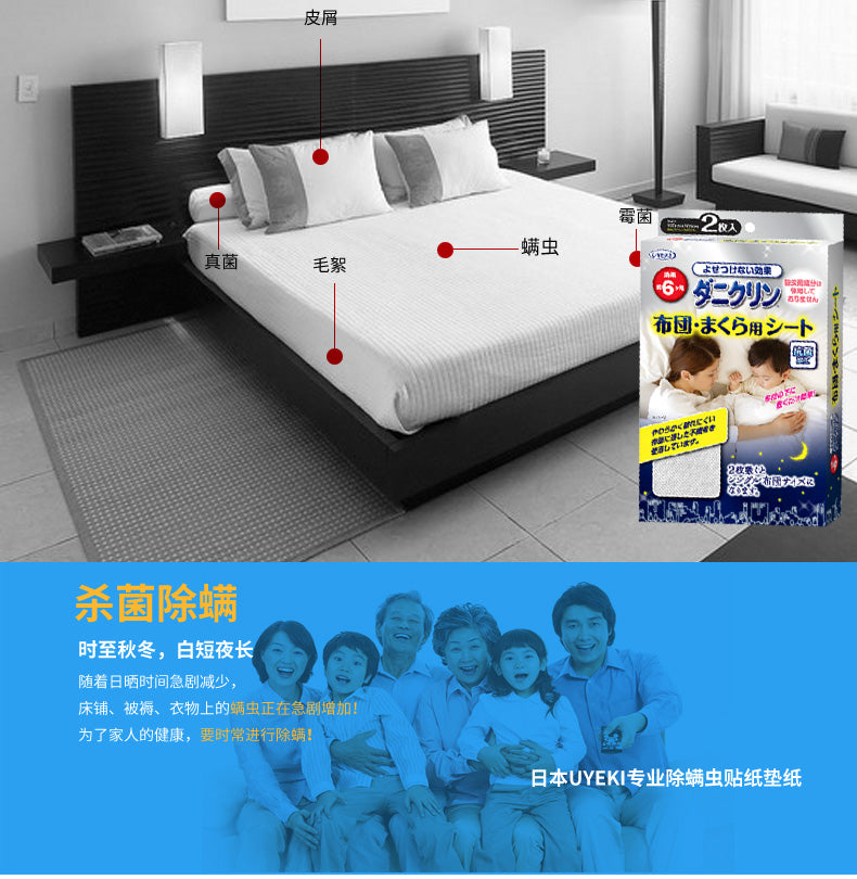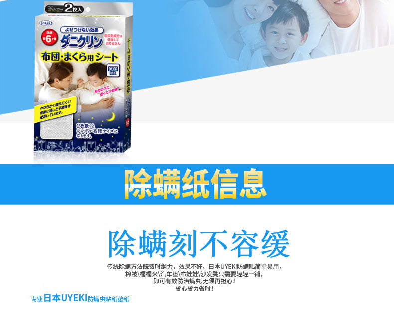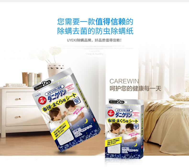 【自营】日本UYEKI 专业除螨虫无纺布防螨贴垫纸 2张 床铺衣橱防虫除螨纸