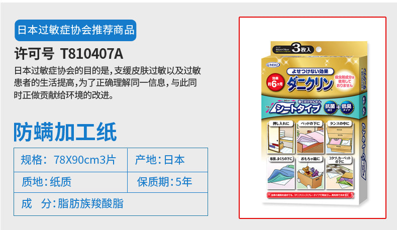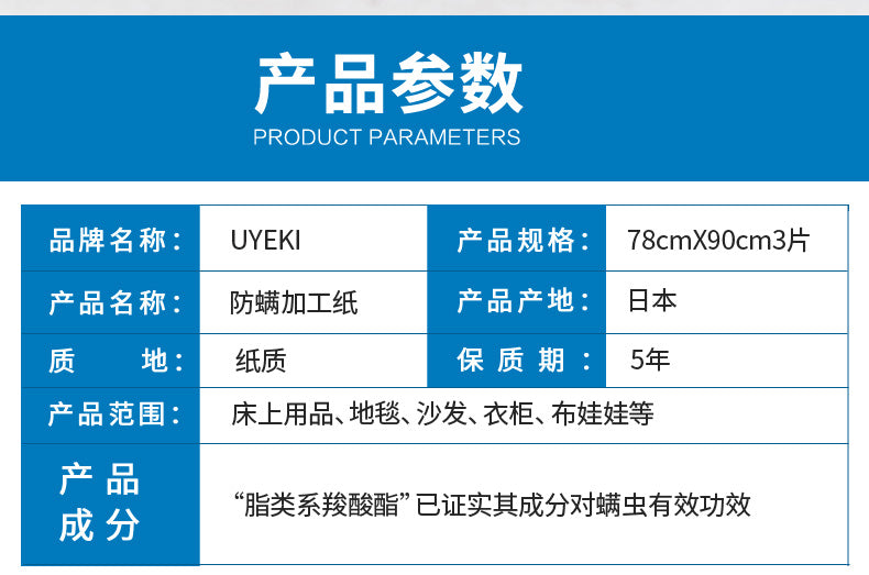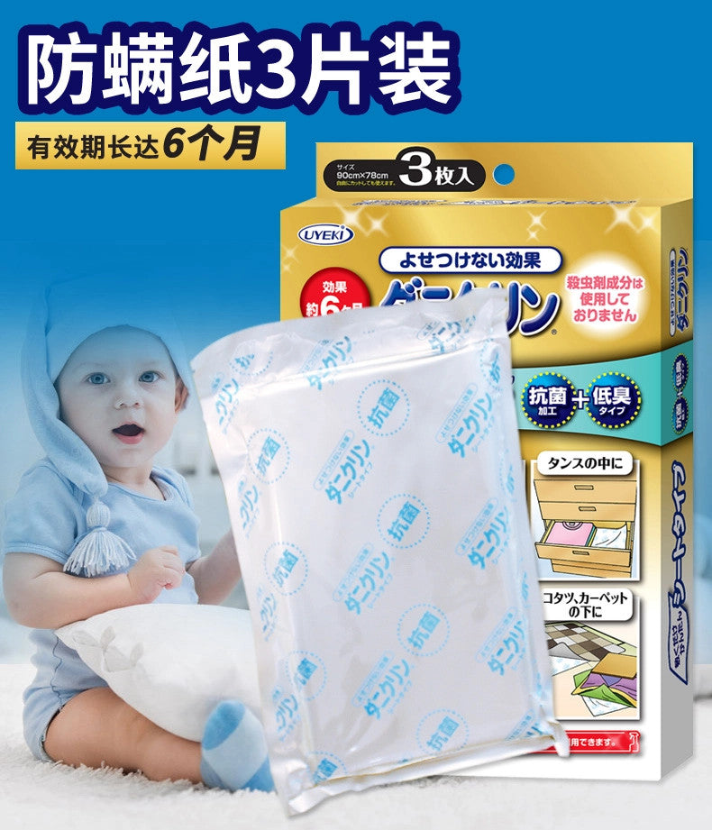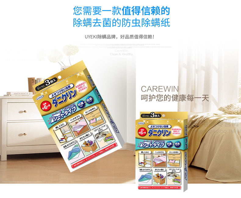 【自营】日本UYEKI 专业除螨虫防螨贴纸垫纸 3张 床上衣柜防虫除螨纸