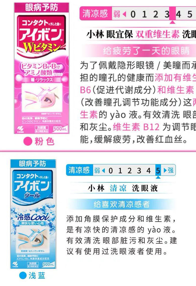【自营】日本KOBAYASHI小林制药 洗眼液 橙色添加玻尿酸长久保湿 适合眼干者 500ml