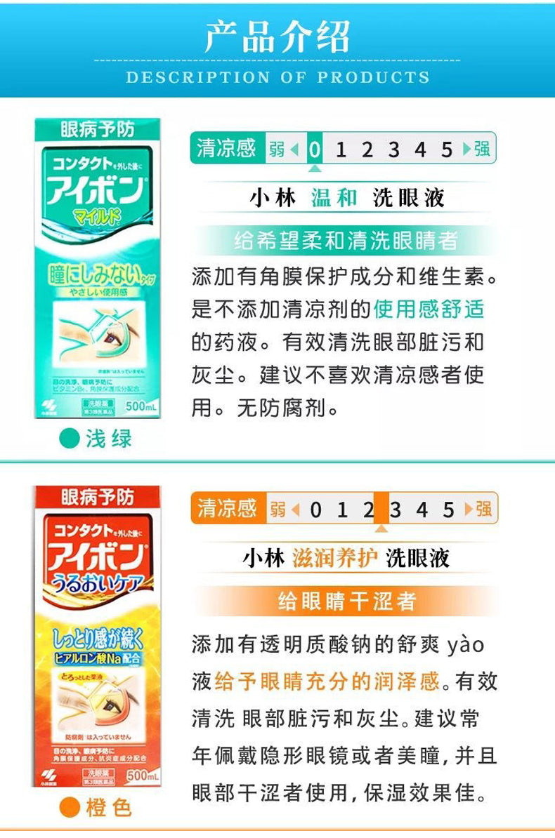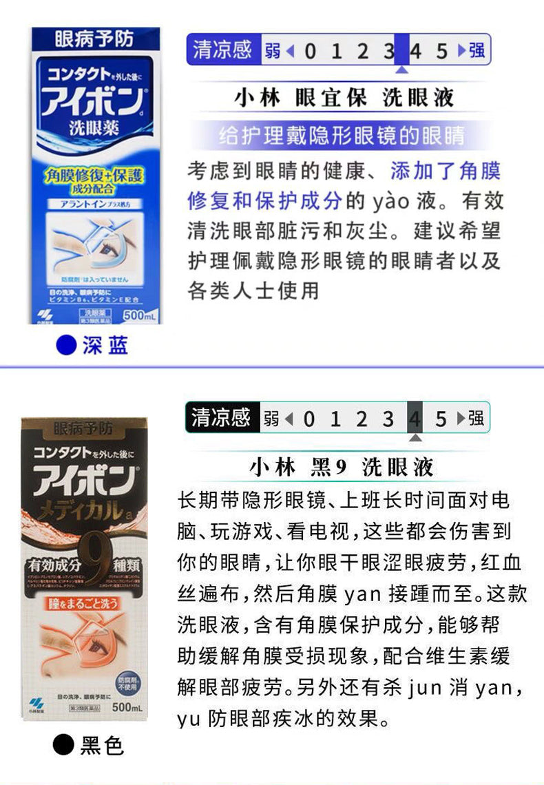 【自营】日本KOBAYASHI小林制药 洗眼液 浅蓝色超爽快cool 缓解眼干、眼痒、眼模糊去红血丝有异物感等 500ml