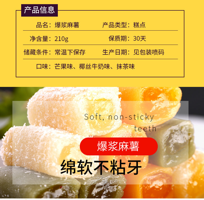 【自营】中国DXC稻香村 爆浆麻薯 210g 椰丝牛奶味 Q弹夹心特产办公室零食小吃糕点