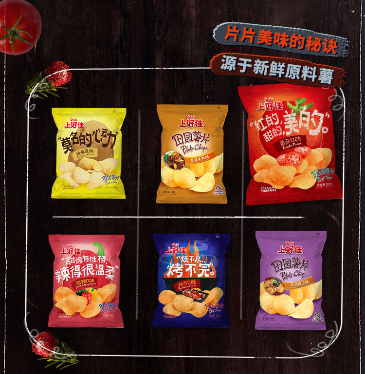 【自营】中国OISHI上好佳 田园薯片 番茄味 50g