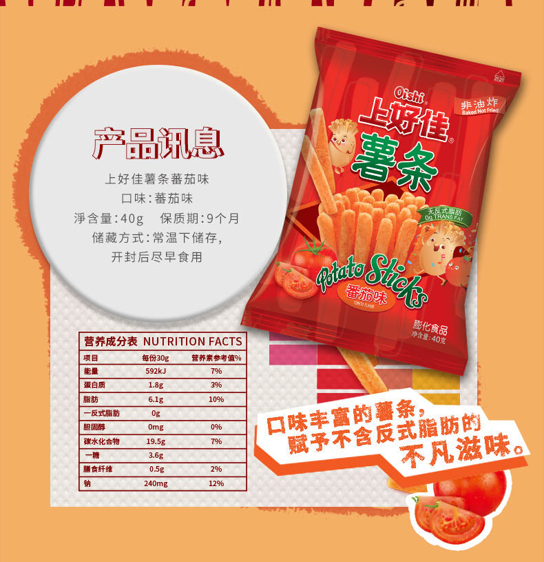 【自营】中国OISHI上好佳 薯条 番茄味 40g