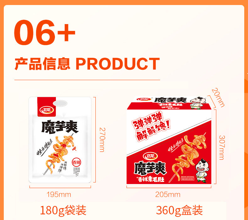 【自营】中国WEILONG卫龙 辣条魔芋丝 魔芋爽 香辣味 18g*20包(360g 盒装)
