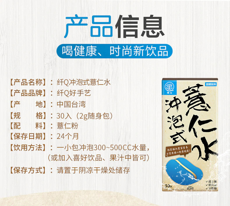 【自营】台湾EJIA好手艺纤Q薏仁水 冲泡式薏仁粉薏米粉冲饮 加强版30包/盒
