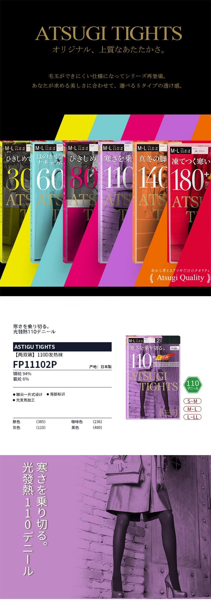 【自营】日本厚木ATSUGI 光发热打底袜日系打底裤 110D 2双装 加厚保暖连裤袜 肤色(385) M~L 臀围85-98 身高150cm-165cm