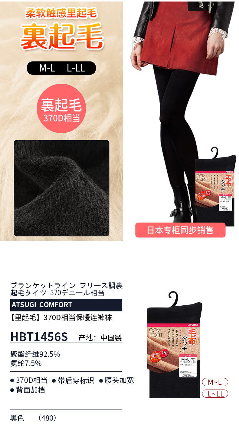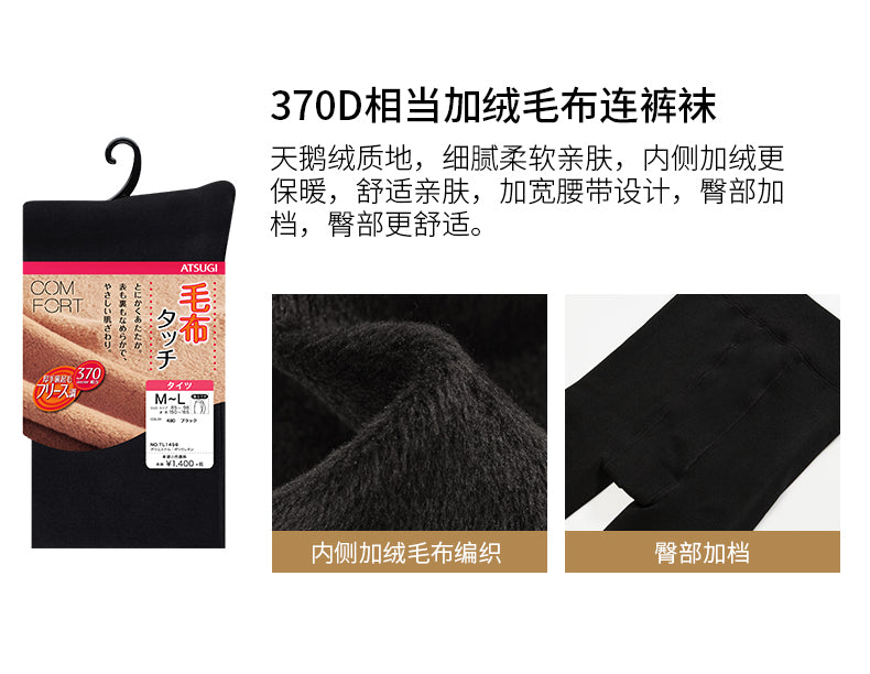 【自营】日本厚木ATSUGI 370D 秋冬款新品女士内加绒加厚冬季连裤袜 一副 保暖打底裤黑色(480) L~LL 臀围90-103 身高155cm-170cm 370D(不透)——0-5摄氏度左右(冬季)