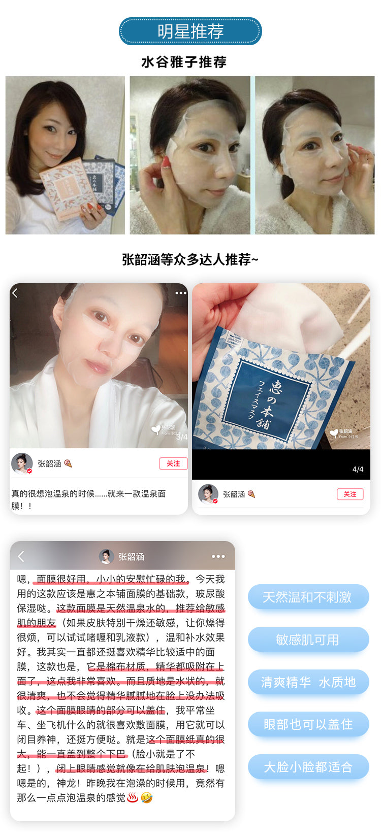 【自营】日本惠之本铺 温泉系美人汤纯净无添加温泉水保湿面膜