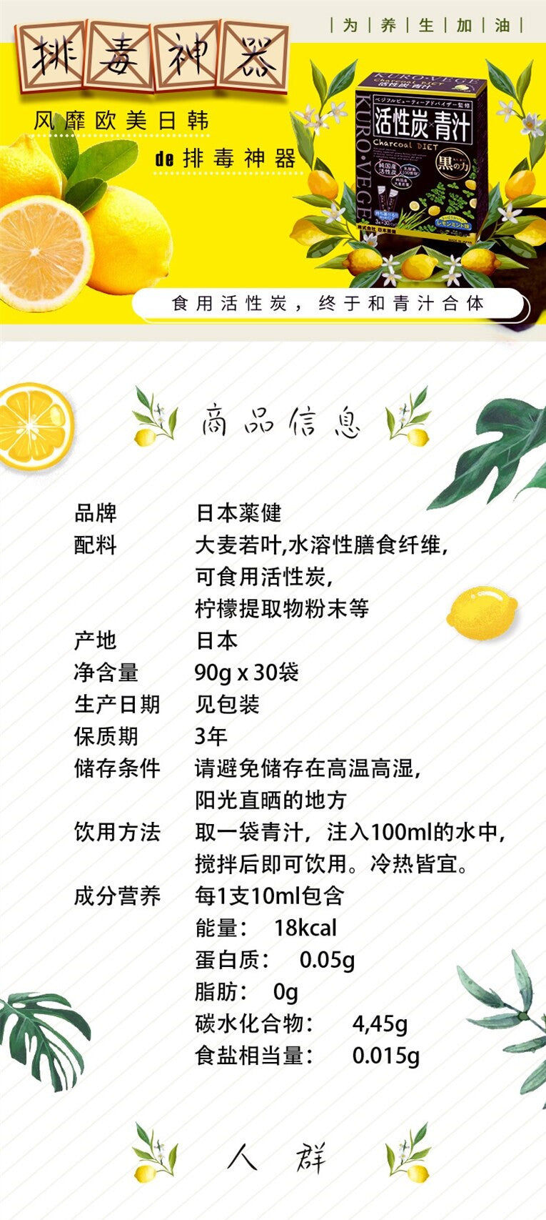 【自营】日本药建Nihon-Yankken 活性炭养生黑科技 活性炭青汁 30袋