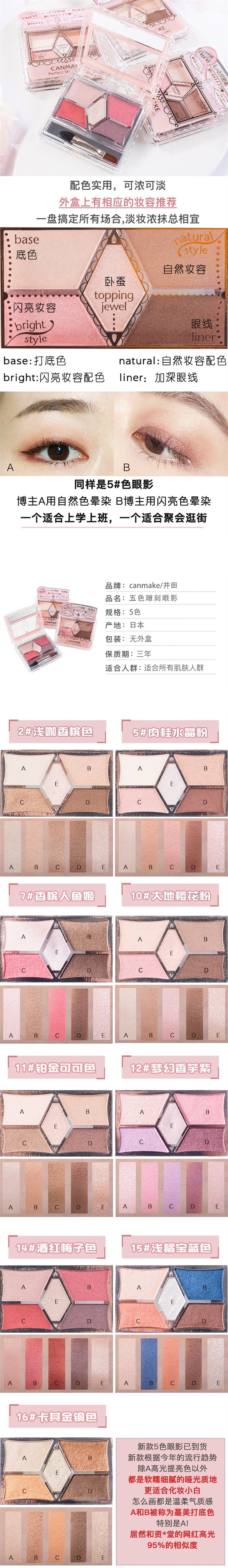 【自营】日本CANMAKE井田 完美雕刻裸色5色眼影盘