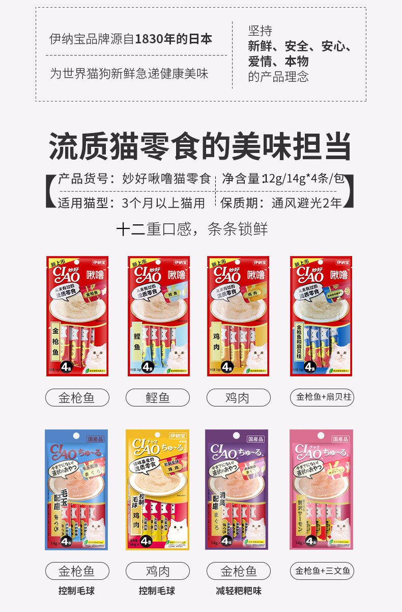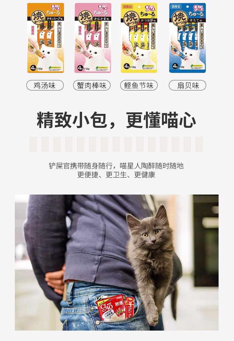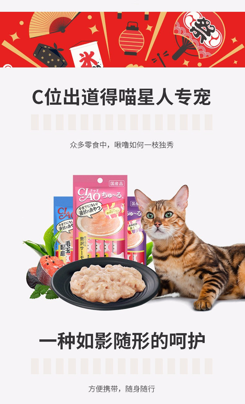 【自营】日本CIAO伊纳宝 猫零食Churu妙好啾噜营养柔软肉酱 美味猫条 20条装 鲣鱼鲣鱼节混合风味 新口味