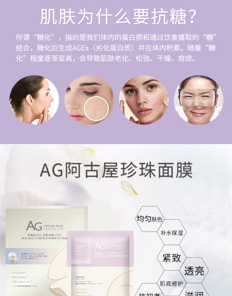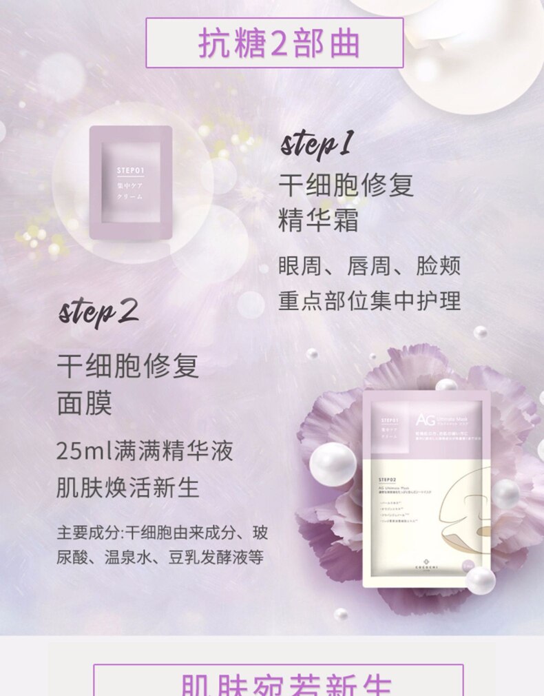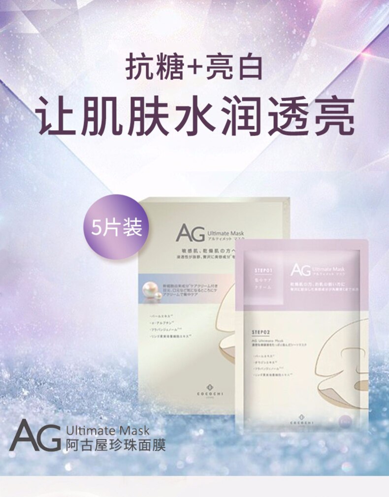 【自营】日本COCOCHI AG抗糖干细胞保湿亮白珍珠面膜 5枚装