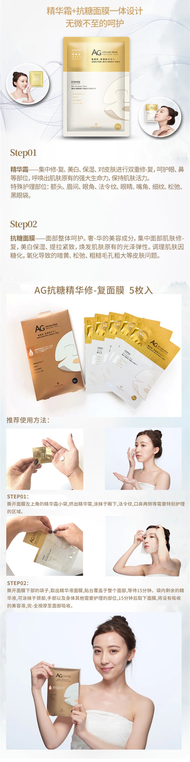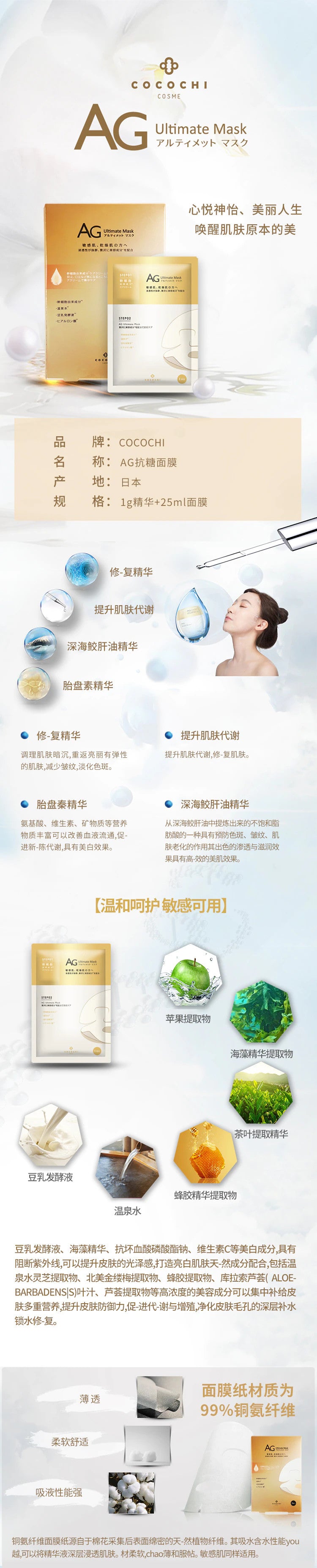 【自营】日本COCOCHI AG抗糖干细胞高浓度保湿 抗衰 紧致 面膜 5枚 金色