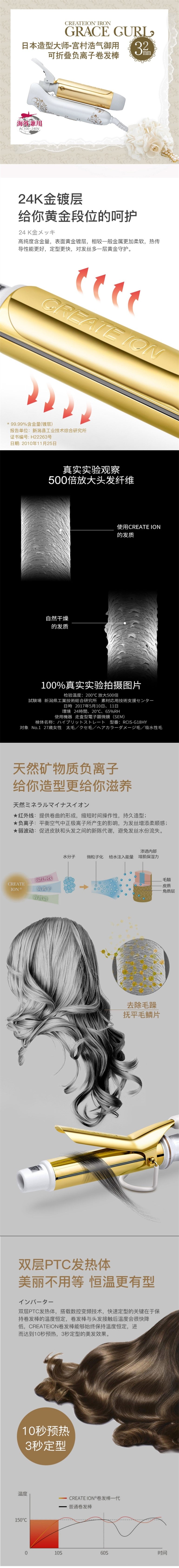 【自营】日本CREATE ION 可折叠负离子卷发棒 便携款 32mm 卷发神器 宫村浩气御用