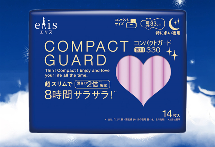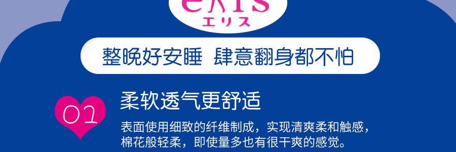 【自营】日本ELIS怡丽 超薄瞬吸型 量多夜用卫生巾 有护翼 330mm 14枚入