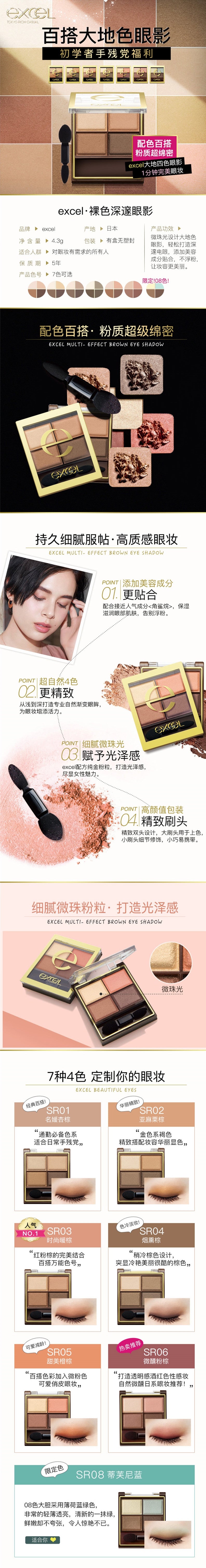 【自营】日本EXCEL 裸色深邃大地色四色哑光眼影盘 #SR05甜美橙棕 4.3g