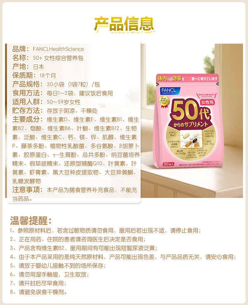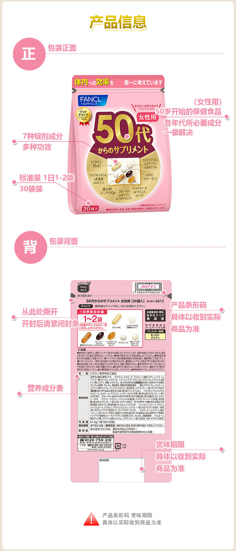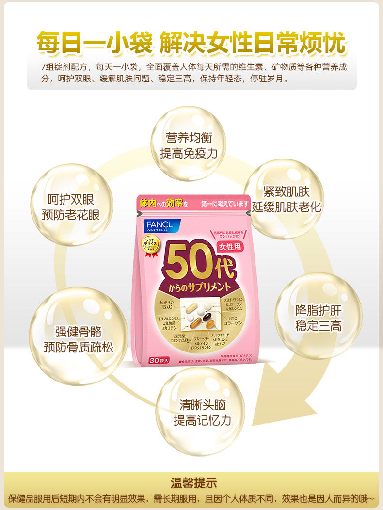【自营】日本FANCL芳珂 新版女性综合营养素维生素50代 (适合50岁-60岁) 30袋*1包