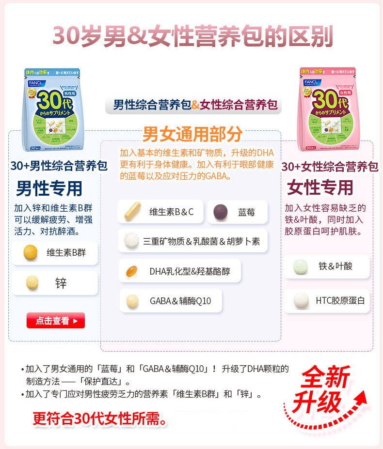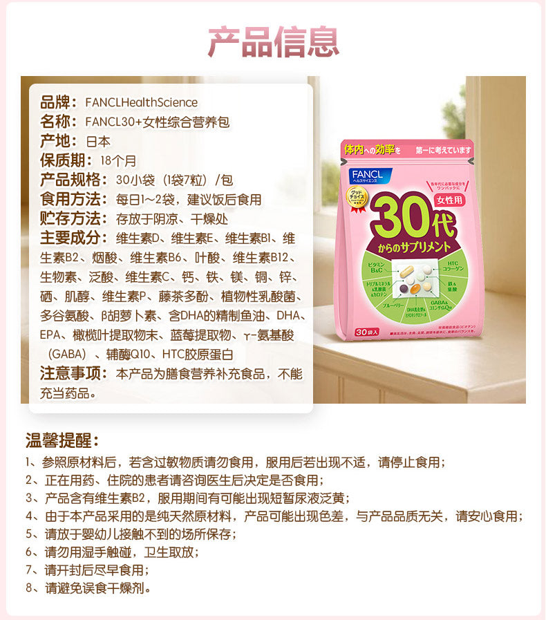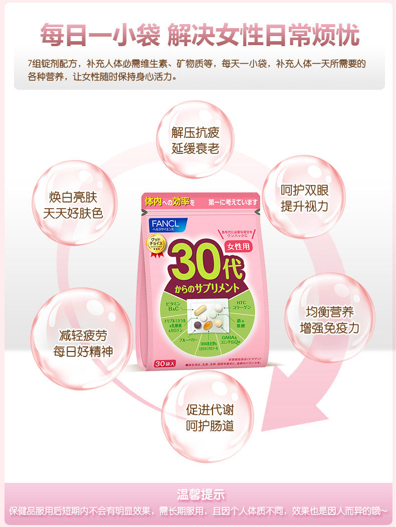 【自营】日本FANCL芳珂 新版女性综合营养素维生素30代 (适合30岁-40岁) 30袋*1包
