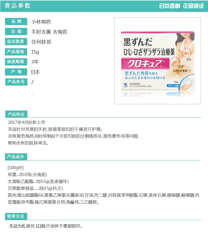 【自营】日本KOBAYASHI小林制药 新版加强款手肘膝盖去黑去角质 促肌肤再生美肤软化膏 15g