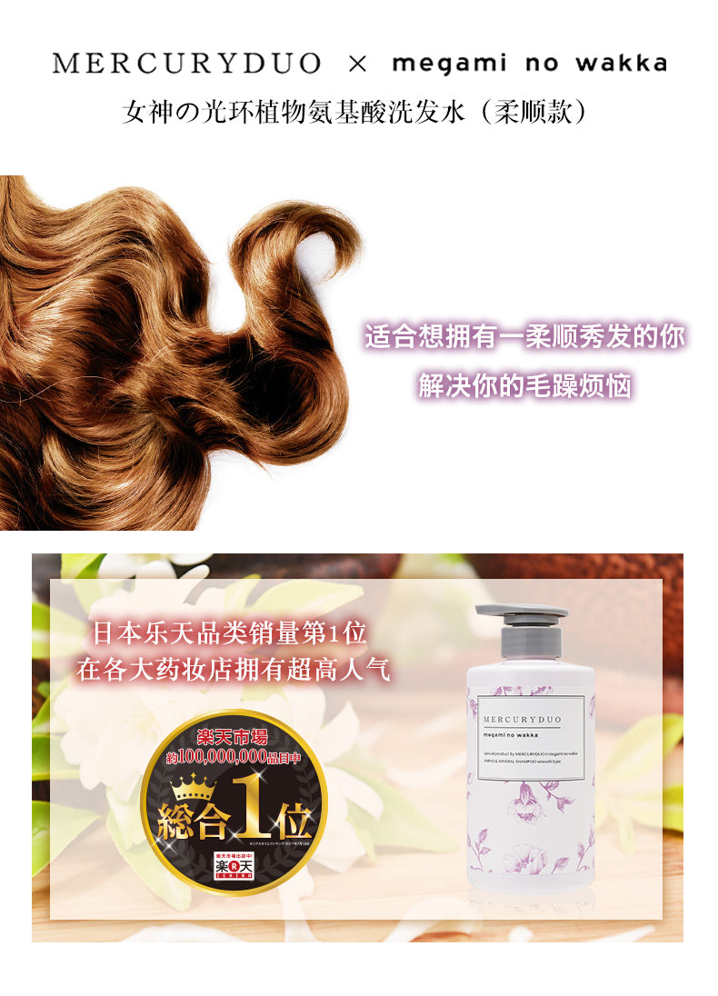 【自营】日本MEGAMI NO WAKKA 女神护发素 MERCURYDUO 植物氨基酸深层海洋精华 柔顺款 无硅护发乳 480ml