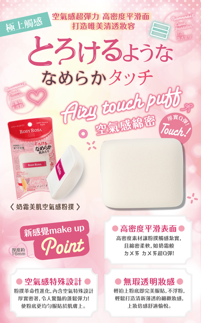 【自营】日本ROSY ROSA 棉花糖奶霜美肌空气感高密度气垫粉扑 1枚入
