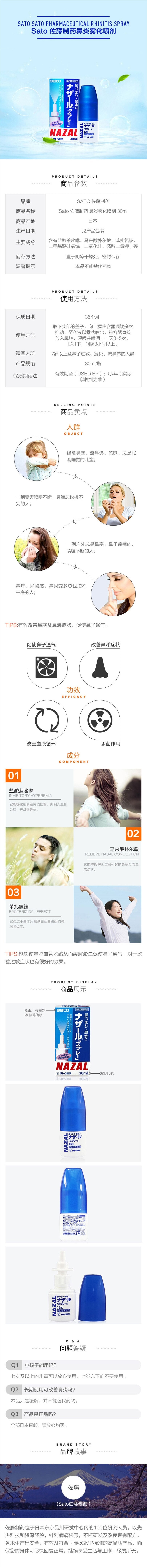 【自营】日本SATO佐藤制药 鼻炎 鼻宁 喷雾剂 日本版 原味蓝色 30ml