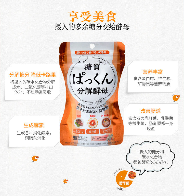 【自营】日本SVELTY丝蓓缇 Pakkun阻糖糖质分解酵母生成酵素56粒