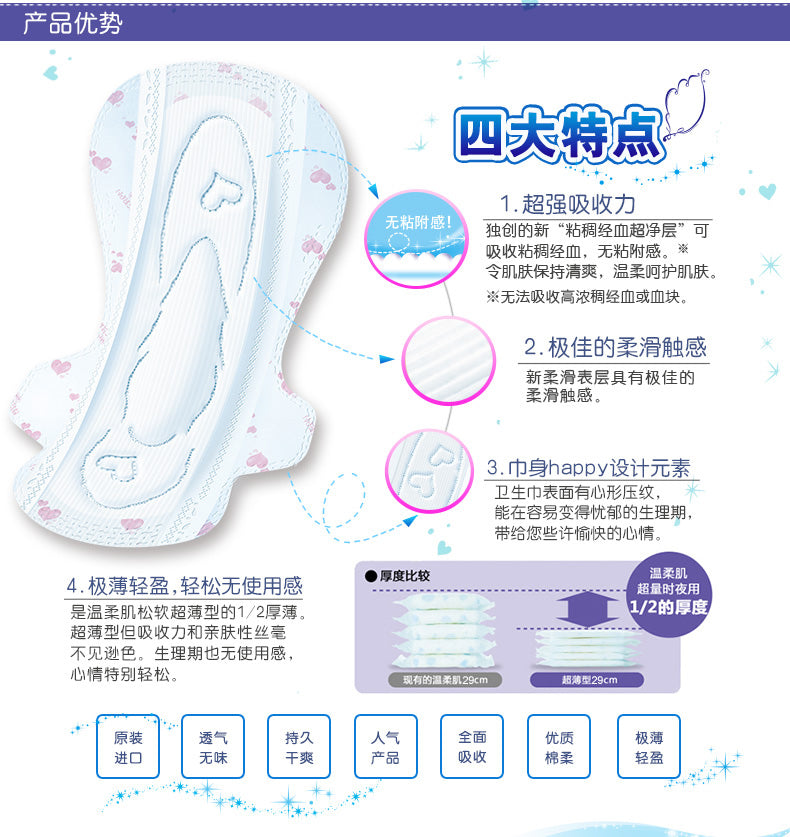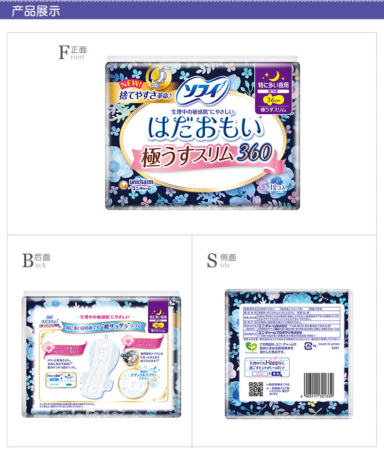 【自营】日本UNICHARM尤妮佳 Sofy苏菲 超薄温柔肌极薄量多夜用型卫生巾 36cm*12片