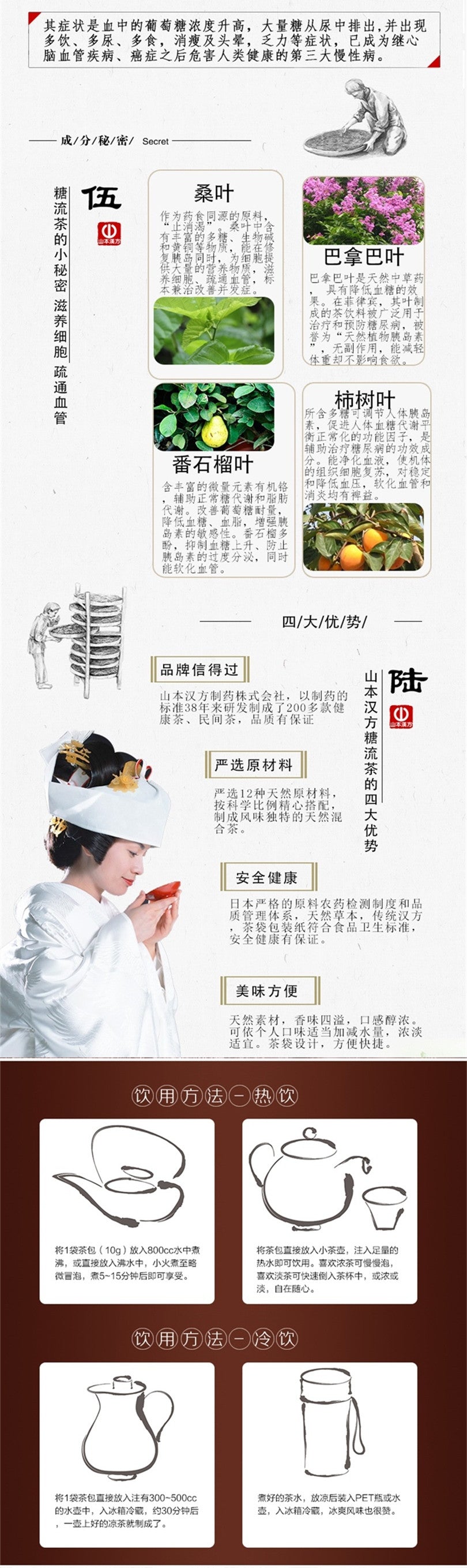 【自营】日本YAMAMOTO山本汉方制药 糖流茶 10g*24袋