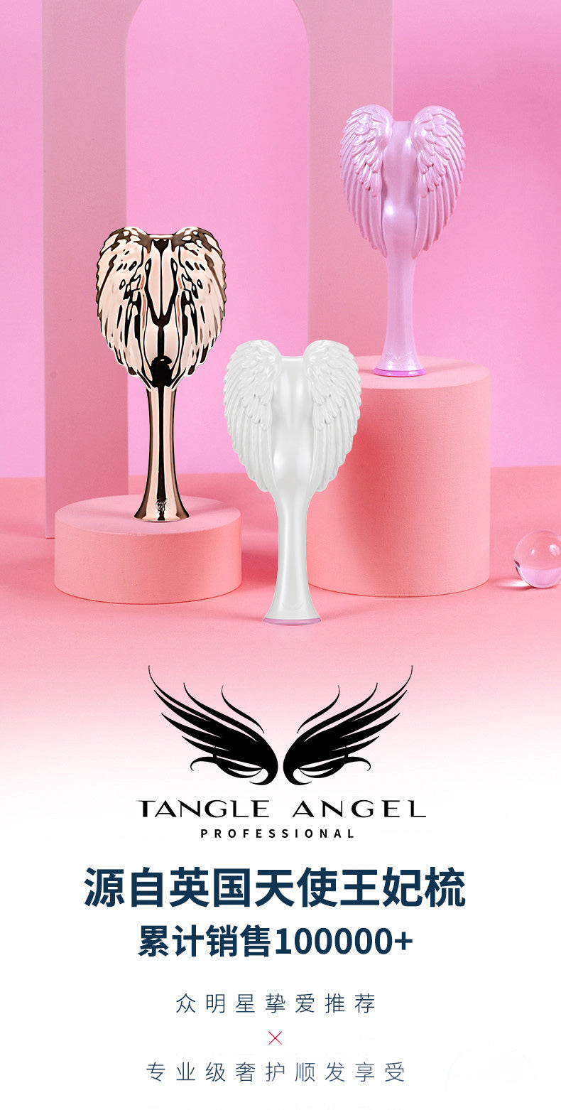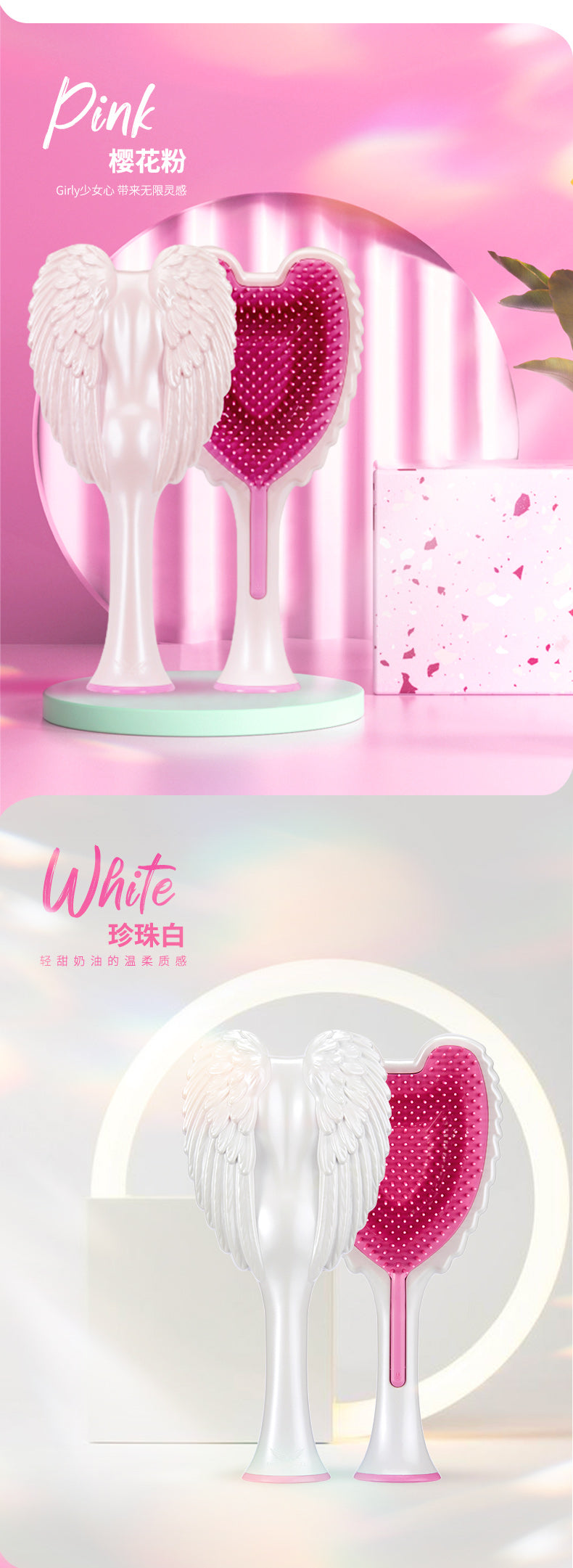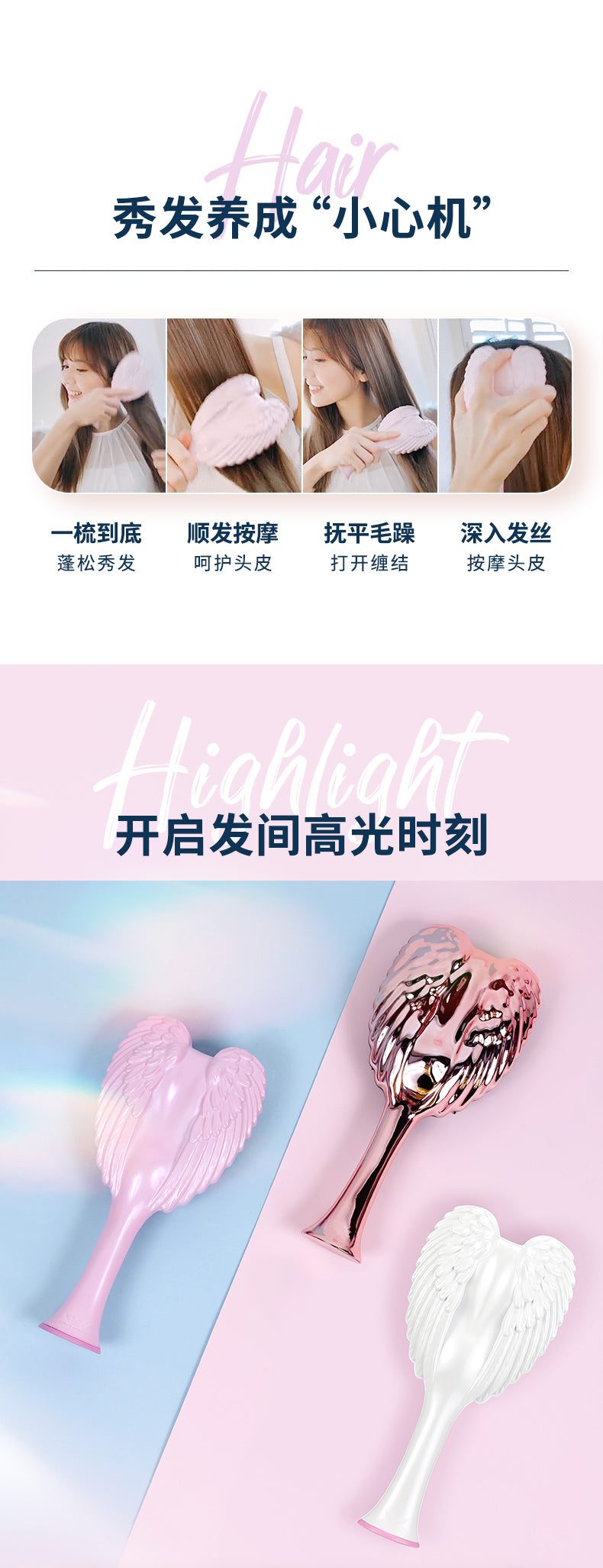【自营】英国TANGLE ANGEL 2代天使按摩美发梳 天使梳 中号 1支装 白粉色 盛世美颜 顺发 防脱发 抗静电
