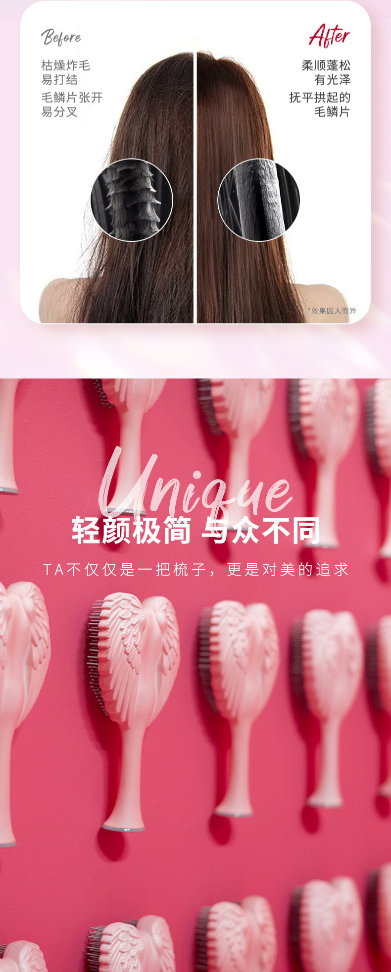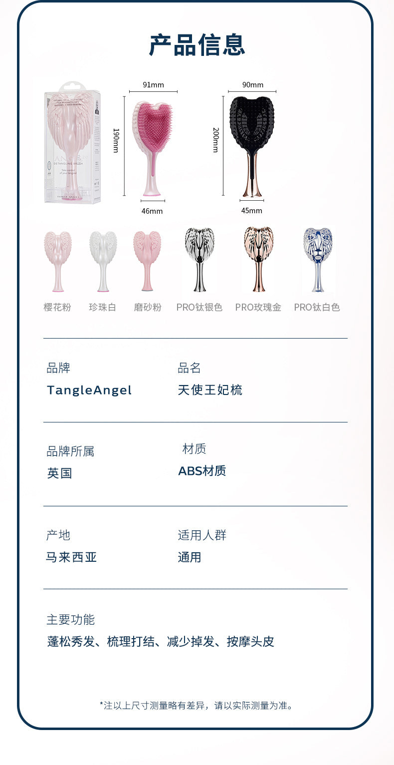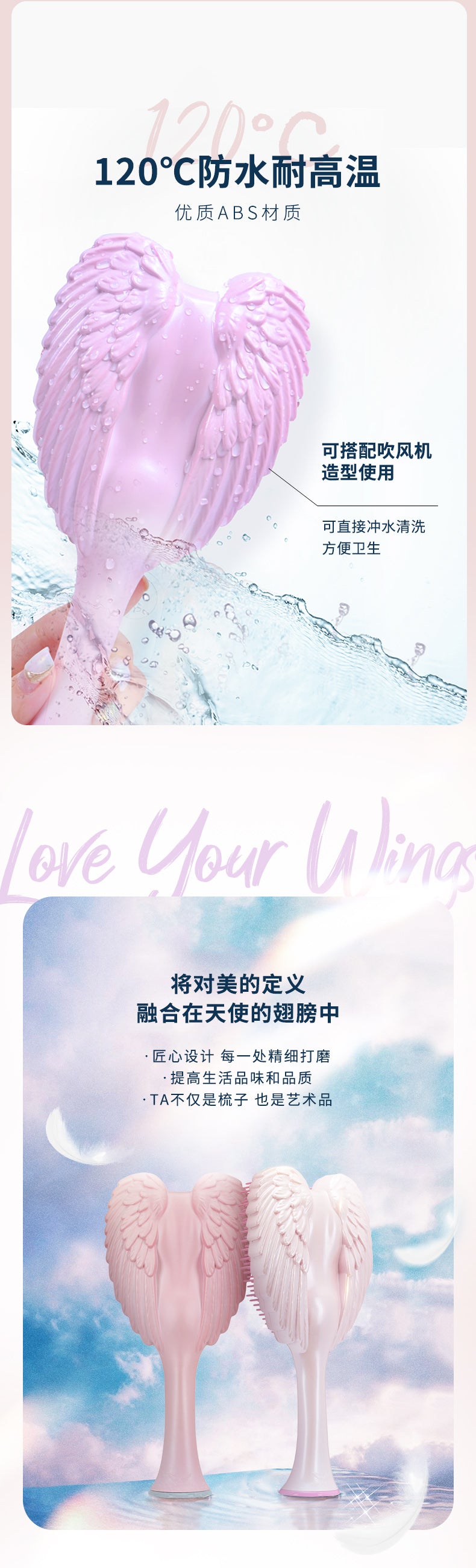 【自营】英国TANGLE ANGEL 2代天使按摩美发梳 天使梳 中号 1支装 白粉色 盛世美颜 顺发 防脱发 抗静电