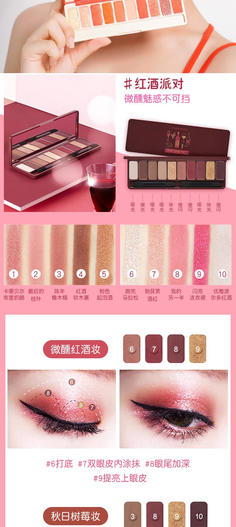 【自营】韩国ETUDE HOUSE伊蒂之屋(爱丽小屋) 冰激凌十色眼影盘 #Wine Party红酒派对 单件入