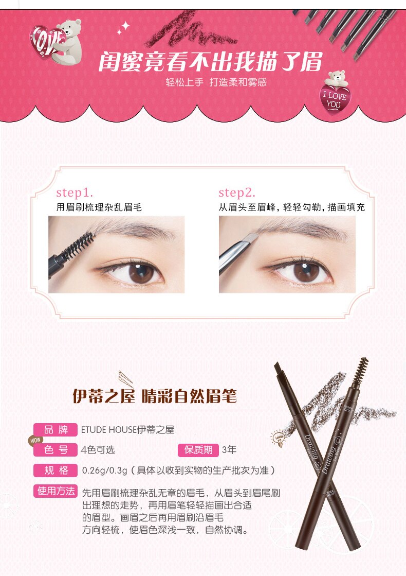 【自营】韩国ETUDE HOUSE伊蒂之屋(爱丽小屋) 睛彩自然眉笔 #03 棕褐色 单支入